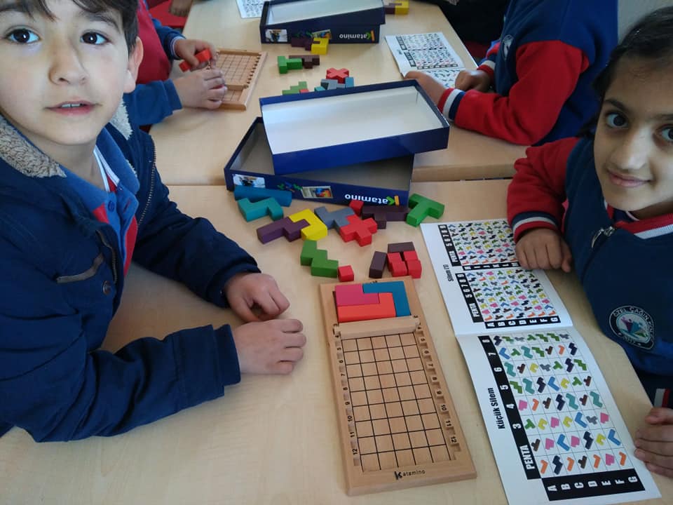 Katamino, çocukların uzamsal zekalarına ve bellek gücüne katkı sağlayan bir inşa oyunudur.